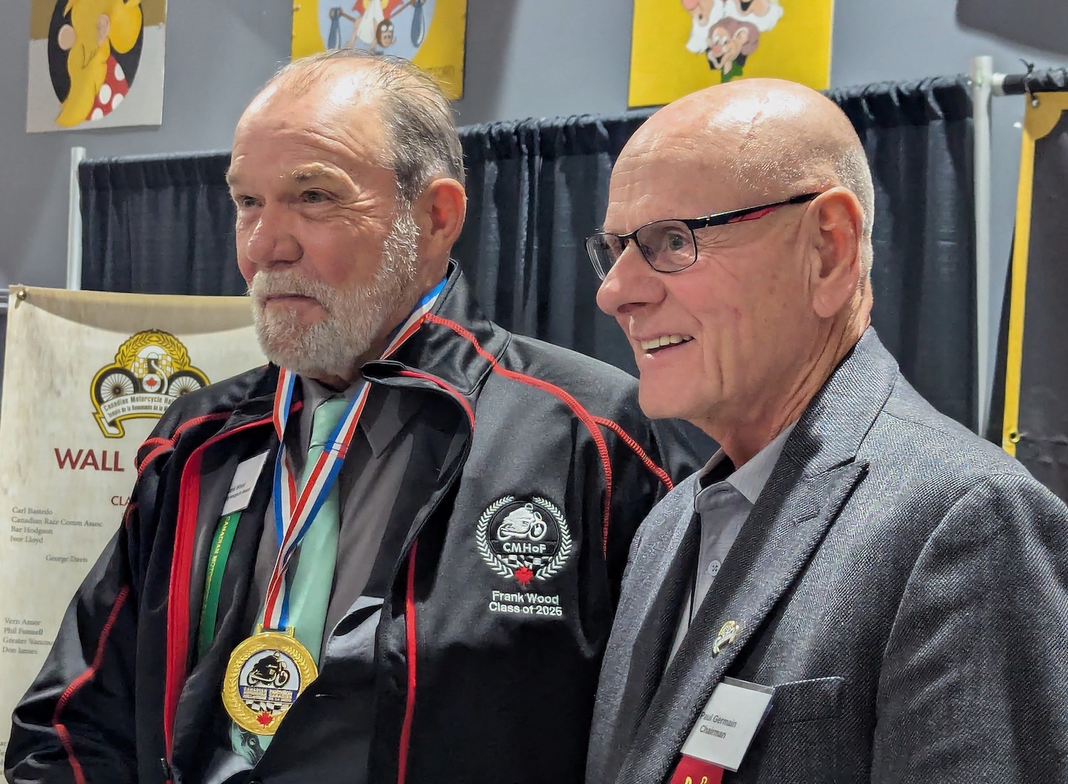 Long time CSBK National event announcer and television host Frank Wood earned the Bar and Hedy Hodgson Award, recognizing his contributions to preserving the heritage of Canadian two-wheeled motorsport. Wood also hosted portions of the event ceremony, with former Suzuki and Harley-Davidson executive (and Brett McCormick career supporter), Nathan Naslund helping M.C., while CSBK founder Colin Fraser conducted some interviews.