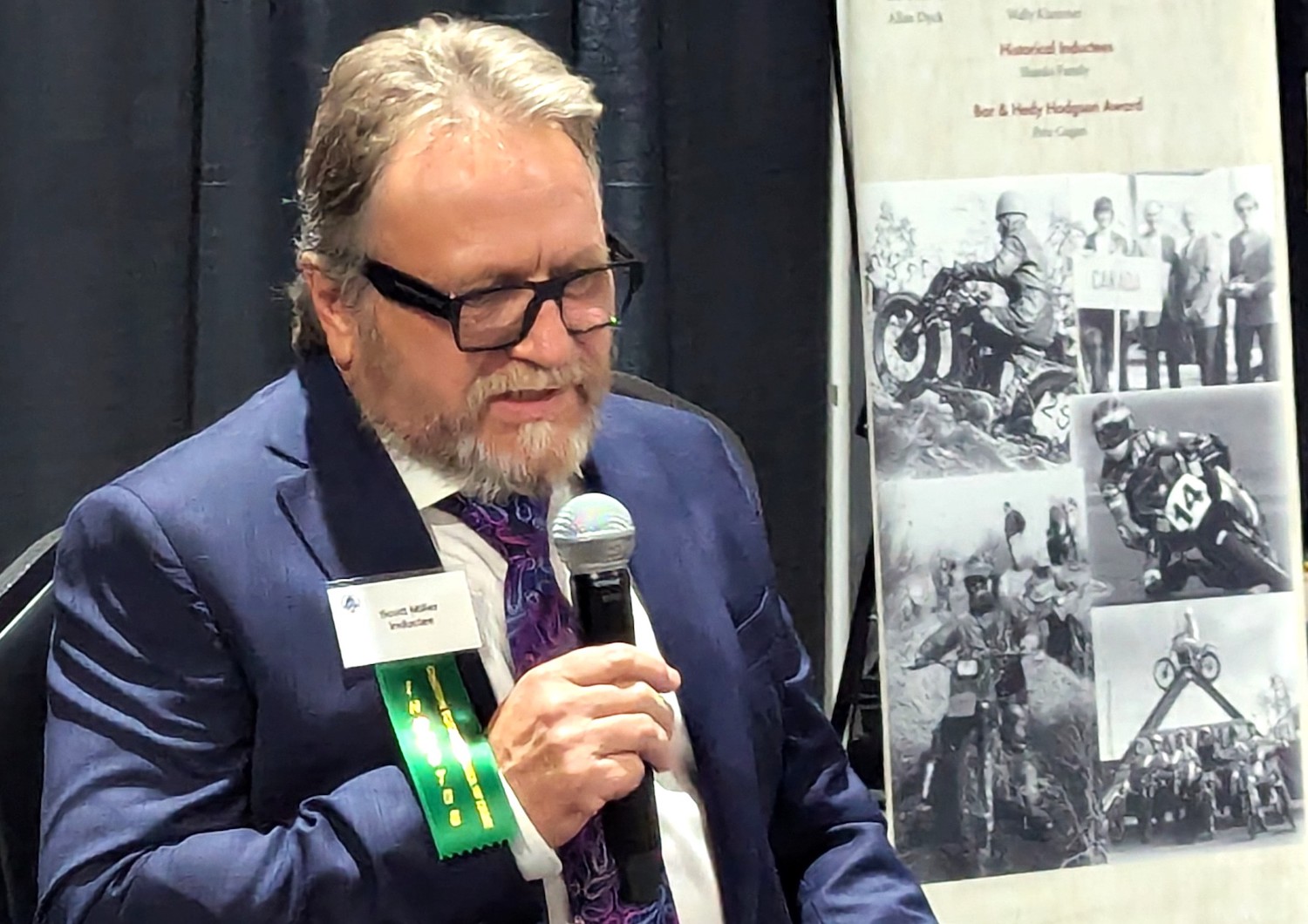 Doug “Fresh” Lawrence was a star in AMA National flat track racing, won the number one plate for Flat Track in Canada, and had a brief but impressive road race career in the CSBK tour a decade ago, Noting that, at age 40, he was the youngster of the group of inductees, Lawrence spoke of his limited opportunity to succeed due to political problems inside Canadian racing during his strongest career period, when he impressed regularly in the United States.
