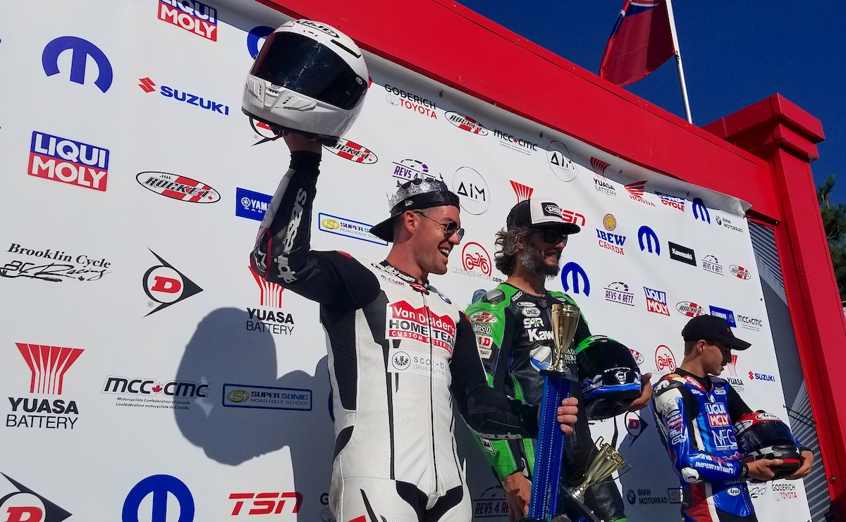 Needing only a podium to clinch the title, Picotte instead echoed McMurter in 1988, crashing on lap two and remounting in 22nd place. Crevier (Diablo-Suzuki) appeared to have the title in hand, before Martin (Blackfoot-Suzuki) stole the victory and relegated his Suzuki teammate to second, with a charging Picotte salvaging sixth further back. Though even Picotte himself didn’t think it was enough, he ultimately would hold on to defeat Crevier by just five points, with only nine points separating the top three in the championship.