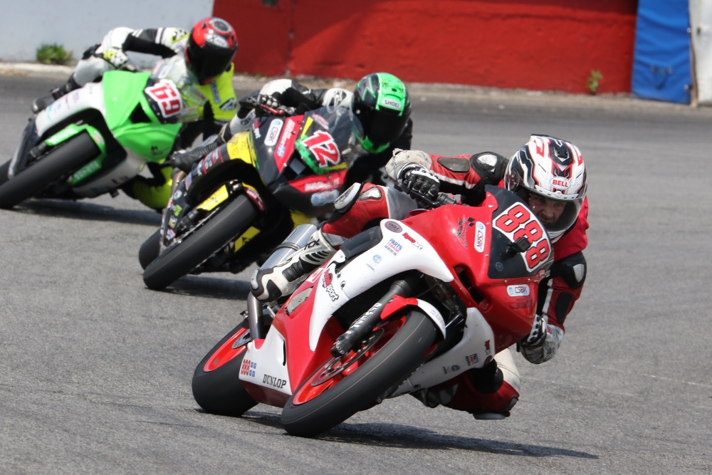 ![Luc Labranche (888) was the early leader in Sunday's hot Amateur Sport Bike race, but it was Christian Allard (69) who took the win. Nicolas Meunier (12) finished second ahead of Labranche. [Photo: Rob O'Brien]](/images/news/070118-2.jpg)