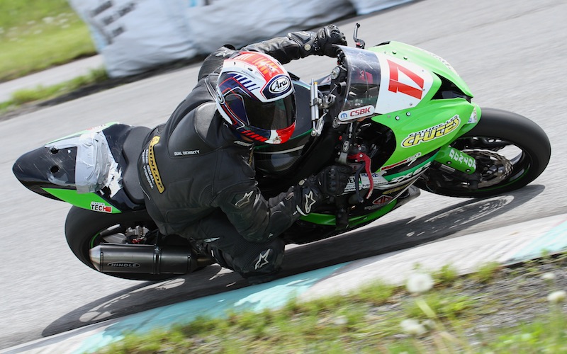 Dalton Timmis Insurance SuperPole at Shannonville offered a tight group of six riders at the front of the grid for Sunday’s first Mopar CSBK Feature race, even though quality track time had been in very short supply this Spring in Ontario. With rain affecting Thursday (all day) and Friday’s official sessions, it was encouraging that five riders joined Champ Jordan Szoke’s Express Lane/Motovan BMW S1000RR (fastest at 1:04.12) at the front of the strong field.