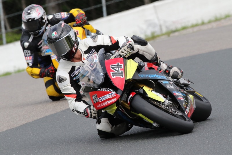 ![Samuel Trepanier (14) led Jordan Szoke for most of Saturday's Superbike race at CTMP. Szoke took the lead with only two laps to go and went on to win, claiming his 12th Canadian Superbike Championship in the process. [Photo: Rob O'Brien]](/images/news/081917-2.jpg)
