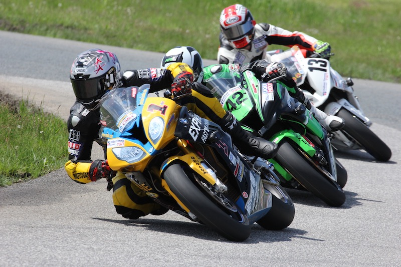 ![Jordan Szoke (1) leads Kenny Riedmann (42) and Matt McBride (13) on the opening lap of Mopar CSBK Superbike action Sunday at Shannonville Motorsport Park. [Photo: Rob O'Brien]](/images/news/052817-6.jpg)