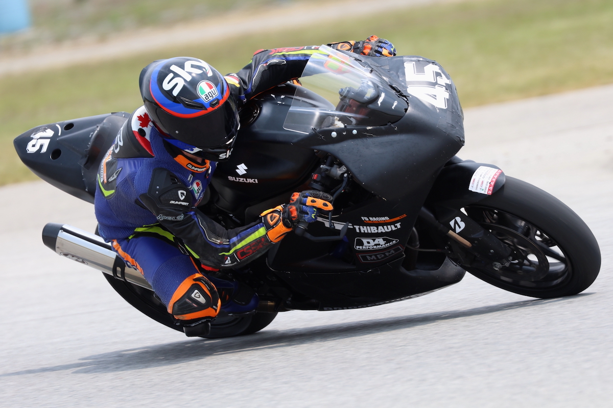 Tremblay’s hiatus from the paddock lasted just one weekend before returning in round two, this time aboard an unfamiliar Turcotte Performance Suzuki, though his last-minute return went about as well as anyone could have expected as he finished second to MacKay in both races and challenged for the lead throughout race two.
