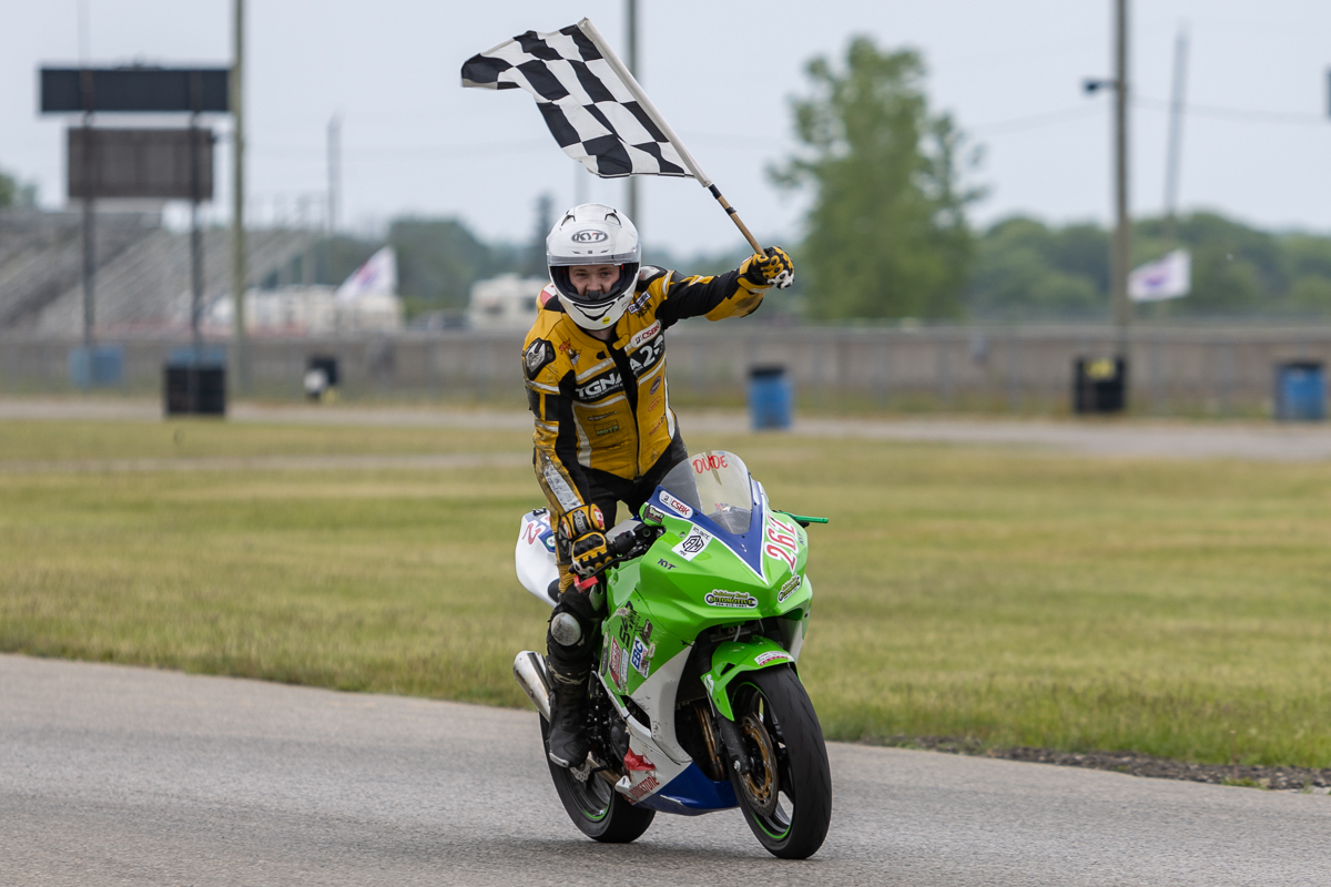 Mavrick Cyr stayed perfect in the amateur classes on Sunday, winning both the AIM Insurance Amateur Superbike and Scorpion EXO Amateur Sport Bike races to headline the support categories at the Grand Bend Motorplex.