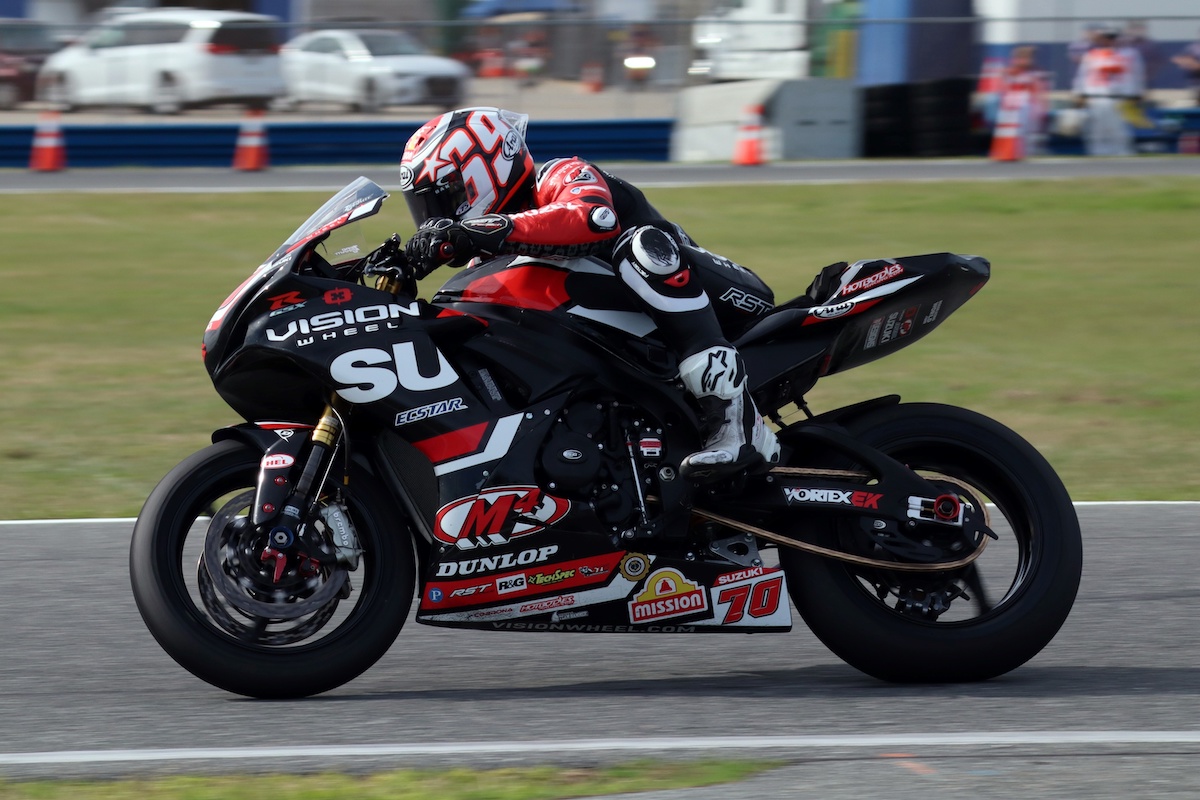 Joining them will be former M4 Suzuki rider Fong, who returned to the Daytona 200 field and didn’t miss a beat aboard his Wrench Motorcycles Suzuki, though he did end the session with a small crash on his final flying lap.