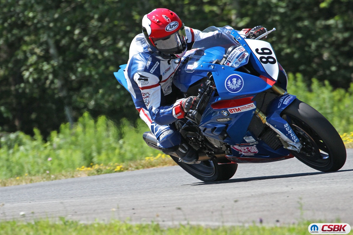 Racers and teams headed out east for the double-header Round 4 of the MOPAR Canadian Superbike Championship (CSBK) at Atlantic Motorsport Park, Shubenacadie, Nova Scotia. The weekend provided a mix bag of weather and results for Ben Young, as he pushed hard for his first win, though it escaped him once again. Aboard his #86 Scot-Build/Barrie Trim and Mouldings BMW S1000RR, Young brought home a 2nd and a 3rd, results which did not reflect the effort the team put into the weekend.