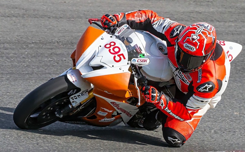 Qualifying on Saturday for the Shoei Helmets Amateur Sport Bike class was the only time I got into the 1:14's which was what I was running at this track last year but after 4 laps my hand went entirely numb and I was struggling to hang on to the bike and figured the safest bet was to pull off in case something bad happened. I was starting the Sport Bike race from 8th place on the 3rd row. Magnetti Marelli Superbike qualifying was pushed back until Sunday after delays and crashes bringing out red flags. We adjusted suspension and installed Forsaken Motorsports Clip-ons trying everything to improve the set-up on the bike in hopes for better results Sunday.
