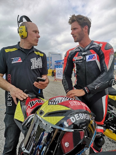 Trepanier finally had the chance to experiment on a dry track and get a feel of the corners, grip level, banking, elevation, bumps, gearing, suspensions, pre-setup feedback, and the fierce backstretch. "That thing is wild. You feel like a passenger on a rocket ship curving up to catch your target while being totally blind at high lean angle spinning the rear tire in blue smoke at 300kph, I've never seen or experienced anything like it whatsoever," commented the Blysk Racing rider after his first few laps in dry conditions.