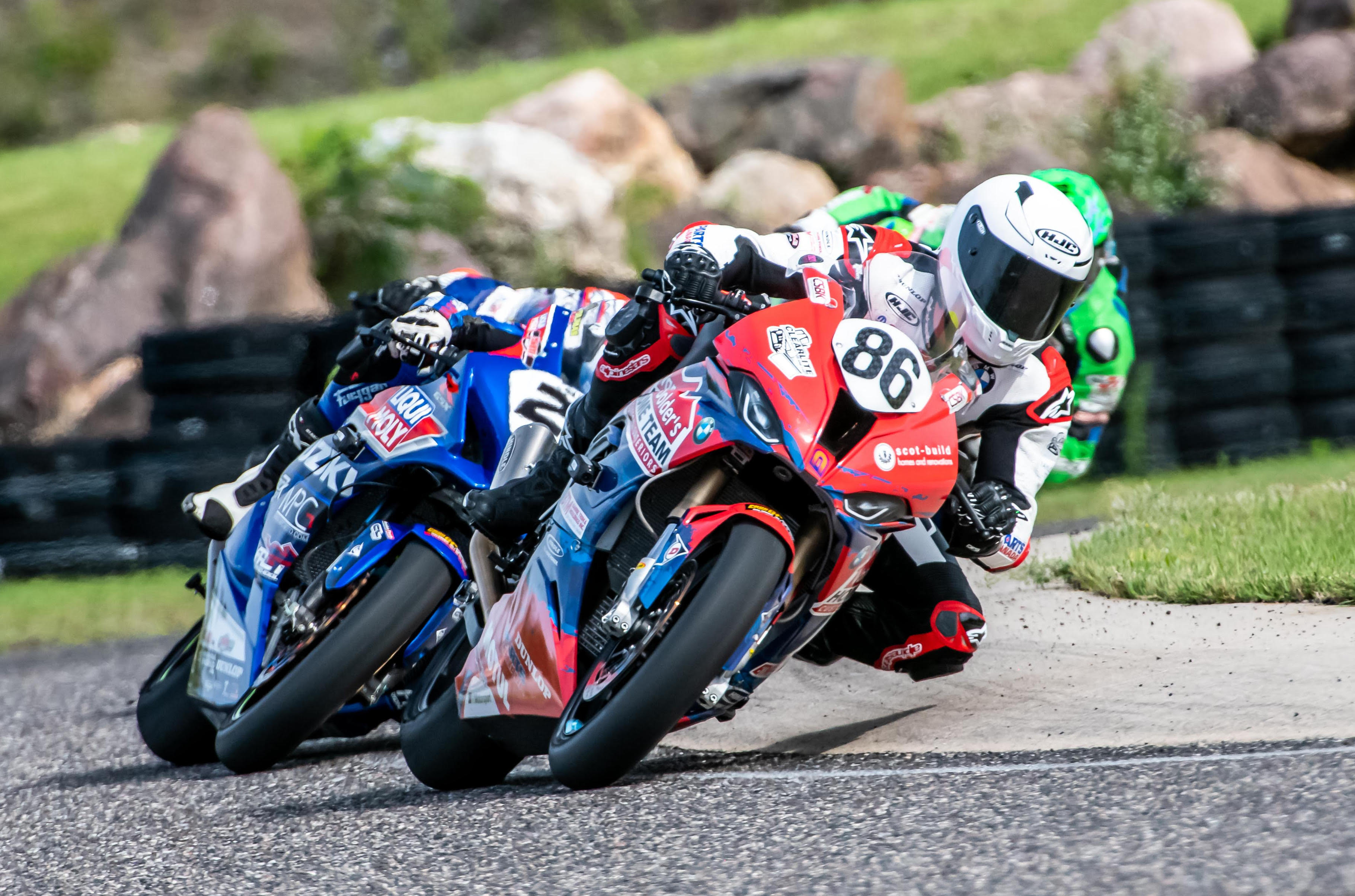 The second race of the day saw Young with a much better start, and he held onto the lead for the first few laps. Dumas managed to outbrake Young heading into turn 5. The Van Dolders BMW S1000RR was having clutch issues all weekend, and so Young couldn’t brake as hard in the hard-braking spots found at Calabogie. The rest of the race saw Young within striking distance of Dumas, always hot on his tail, but he couldn’t make a safe pass. There was an attempt at turn 11 toward the end of the race, but the riders bumped, and both ran wide. Young passed the chequered with another second-place finish.