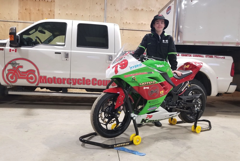#79 MackWeilRacing’s 15 year old Mackenzie Weil from Keene, Ontario is proud to announce that he will be competing in his first ever Mopar CSBK Lightweight Sport Bike series aboard his MotorcycleCourse.com Moto-D sponsored Kawasaki 300 Ninja.
