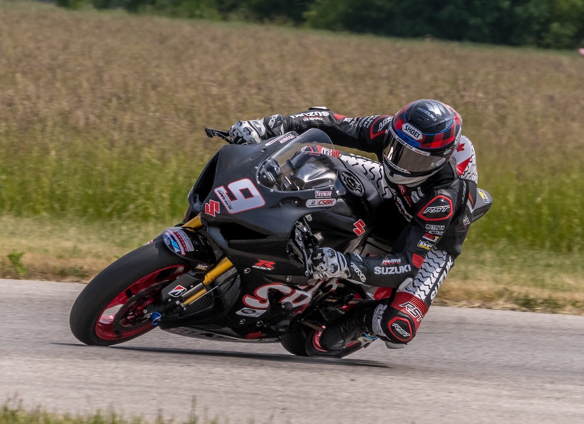 Special thanks go to Trevor’s makeshift crew for the weekend, consisting of Pat Barnes, Roland Riedmann, the off-site Mike Ferguson, and the ever-effervescent Jon Cornwell, who kept the mood light and the wrenches spinning. Specifically, Jeff Laidman’s MotoSPEC software and Jon’s setup assistance allowed a significant step forward in how Trevor’s GSX-R responded, a good omen as the series heads to Nova Scotia lobster country for round three next month.